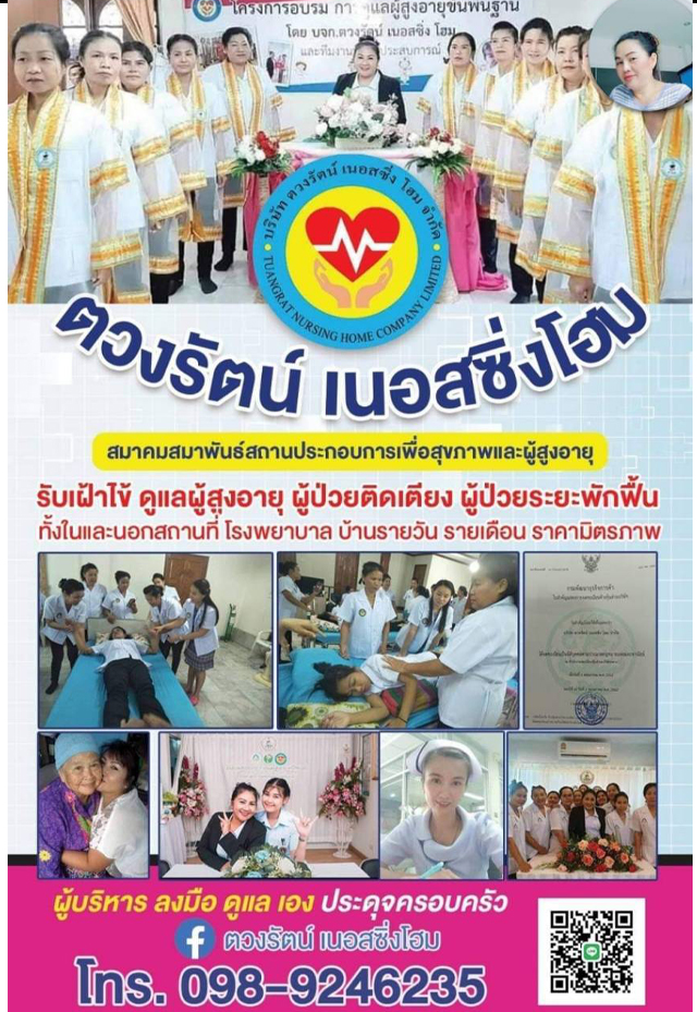 หากท่านกำลังหาบริการจัด-ส่ง ผู้ดูแลเฝ้าไข้ผู้ป่วยที่บ้านและโรงพยาบาล หรือต้องการหาพี่เลี้ยงเด็ก ต้องการหาแม่บ้านทำความสะอาด ศูนย์ตวงรัตน์ เนอสซิ่งโฮม ให้บริการจัดส่งผู้ดูแลที่ได้รับการฝึกด้านการดูแลผู้ป่วย ผู้สูงอายุ เด็กและทำความสะอาด ให้บริการทั่วประเทศ มีบริการจ้างทั้งแบบรายวัน-รายเดือน