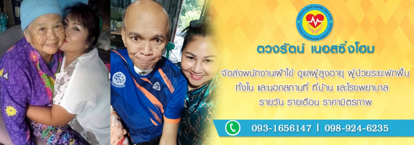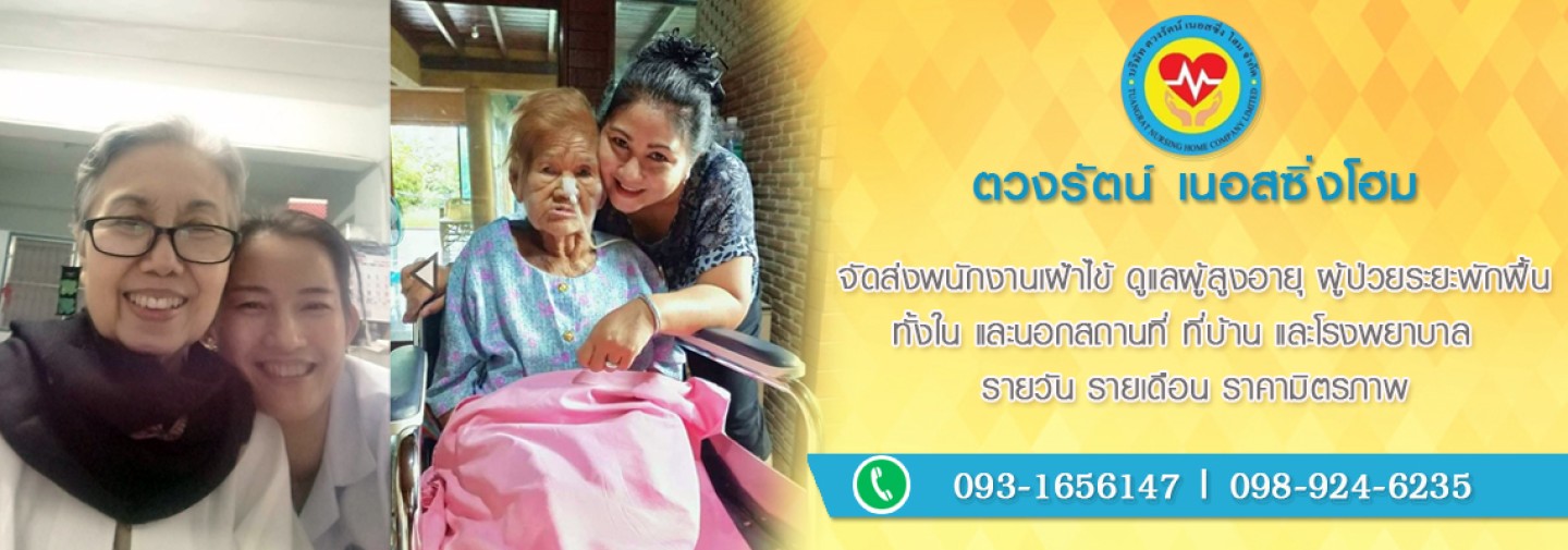 ตวงรัตน์ เนอสซิ่งโฮม บริการจัดส่งผู้ดูแล เฝ้าไข้ผู้ป่วย ดูแลผู้สูงอายุ พี่เลี้ยงเด็ก แม่บ้าน แม่ครัว ประจำบ้านและโรงพยาบาล ทั่วกรุงเทพ และต่างจังหวัด ให้บริการจัดหาผู้ช่วยดูแลคนที่คุณรัก ทั้งแบบประจำและแบบไป-กลับ รายวัน รายเดือน ราคามิตรภาพ