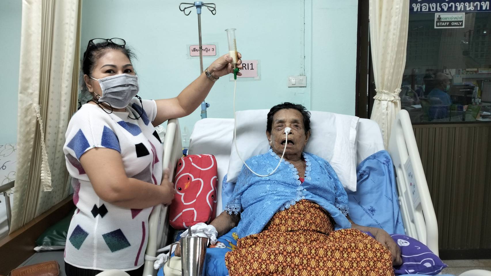 - การรับประทานอาหาร ป้อนข้าวป้อนน้ำ ให้อาหารทางสายยาง เฝ้าระวังการสำลักอาหาร